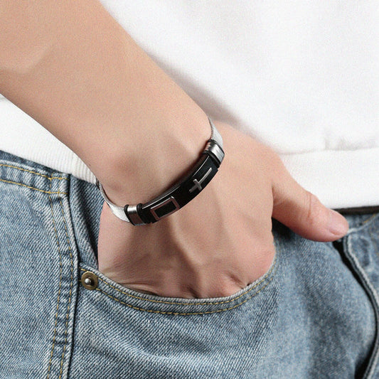 Männerarmband "Heiliges-Kreuz" aus Weißem Stahl