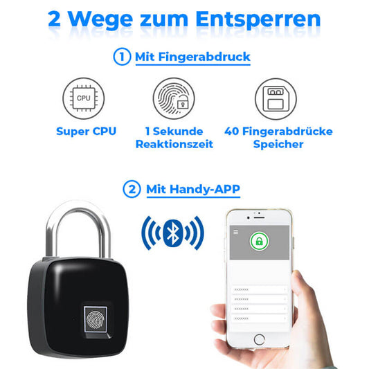 Wasserdichtes Vorhängeschloss mit Fingerabdruck-Scan und Bluetooth-APP
