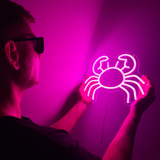 Pinke Neonkrabbe LED Schild (26,5x35cm)(USB)