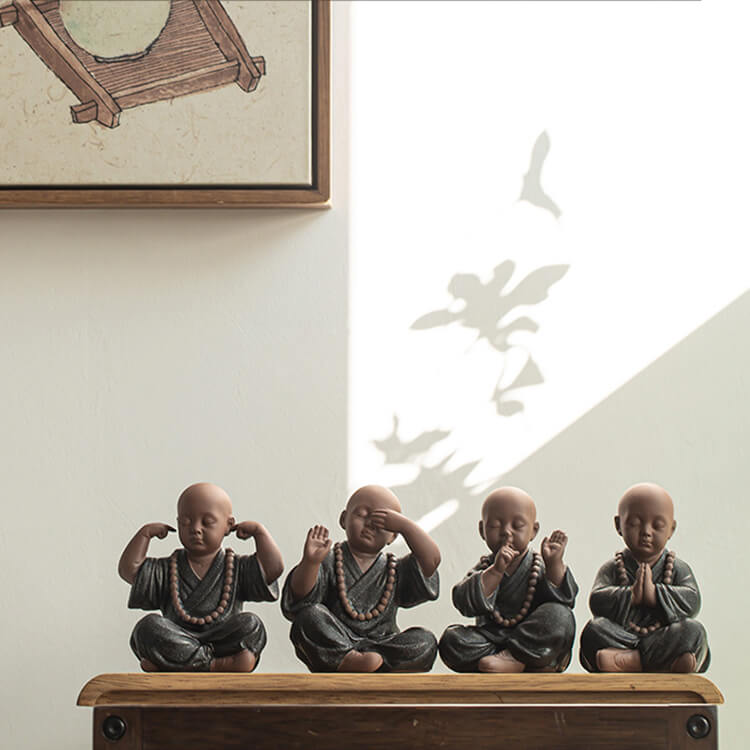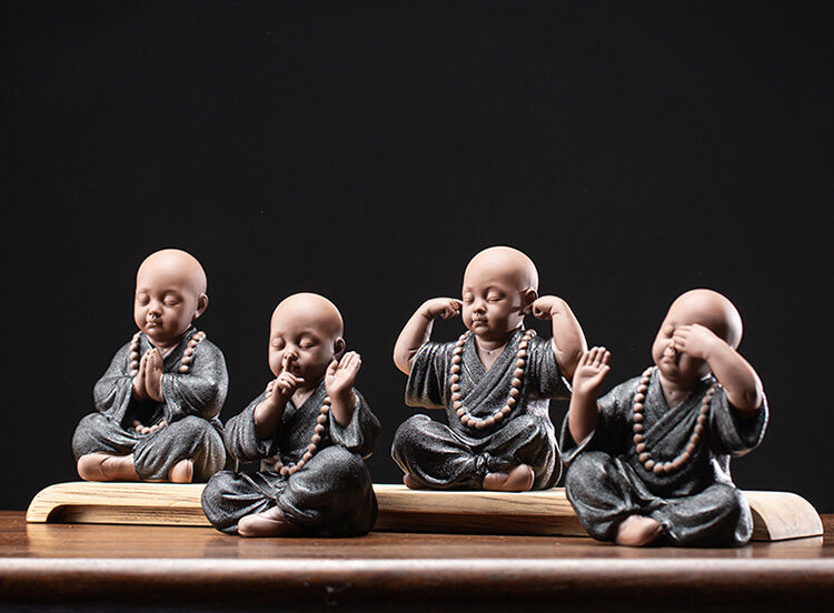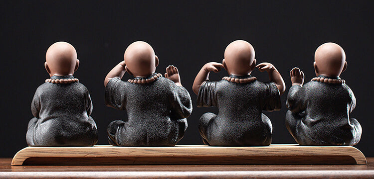 Die "Vier Grundlagen der Meditation" - Mönchsfiguren aus Tonerde