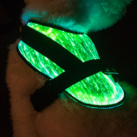 Mit diesem Hundegeschirr aus leuchtenden Glasfasern, findest du deinen Hund mit Leichtigkeit im Dunkeln